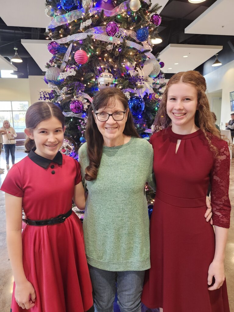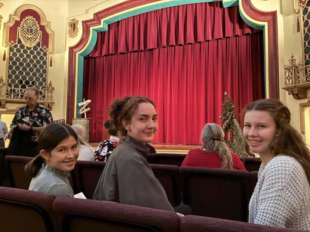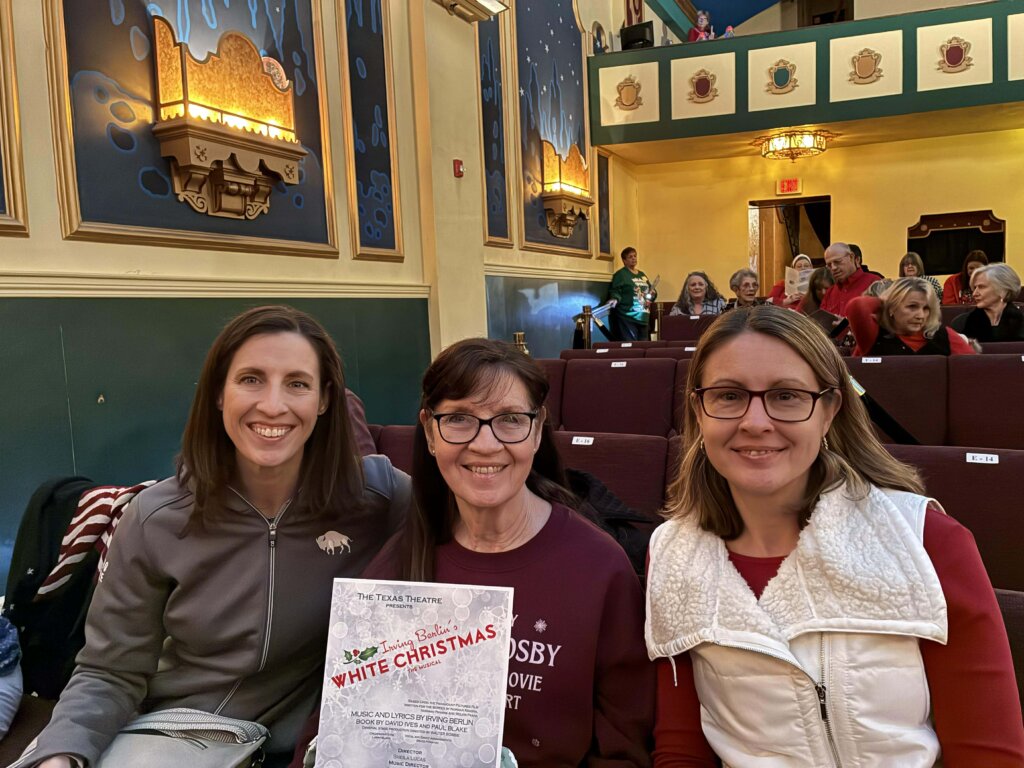 Ready for the stage performance of “White Christmas” at the Stephen & Mary Birch Texas Theatre in Seguin. Granddaughters are Sophie (12), Abby (23), and Elayna (15).