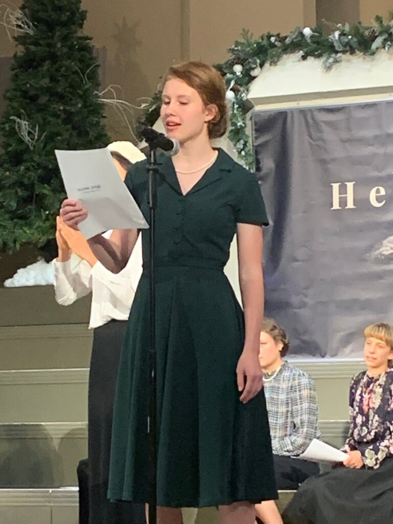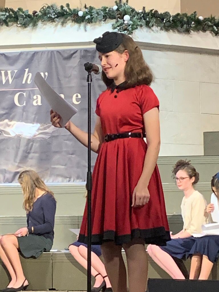 Sophie in their school play–they did a 1940s-style radio entertainment–complete with sound effects, of several Christmas movie clips.